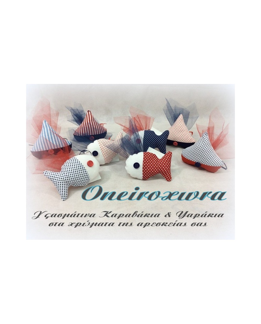 Υφασμάτινη Χειροποίητη Μπομπονιέρα Βάπτισης Καραβάκι Ψαράκι
