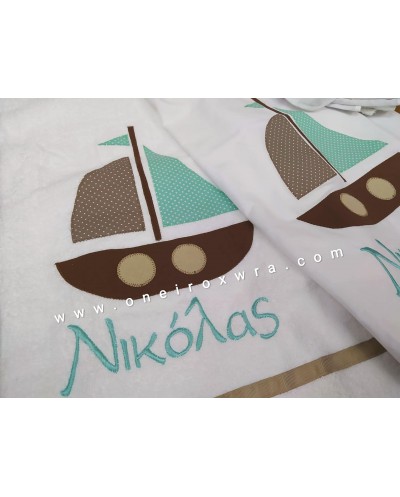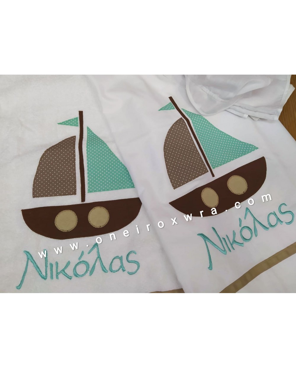 Λαδόπανα Βάπτισης Καραβάκι με Κεντημένο Όνομα