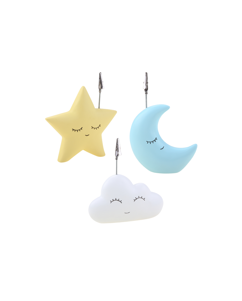 Μπομπονιέρα Βάπτισης Aστέρι, Φεγγάρι Σιέλ & Σύννεφο (σετ των 3) / 2200Α