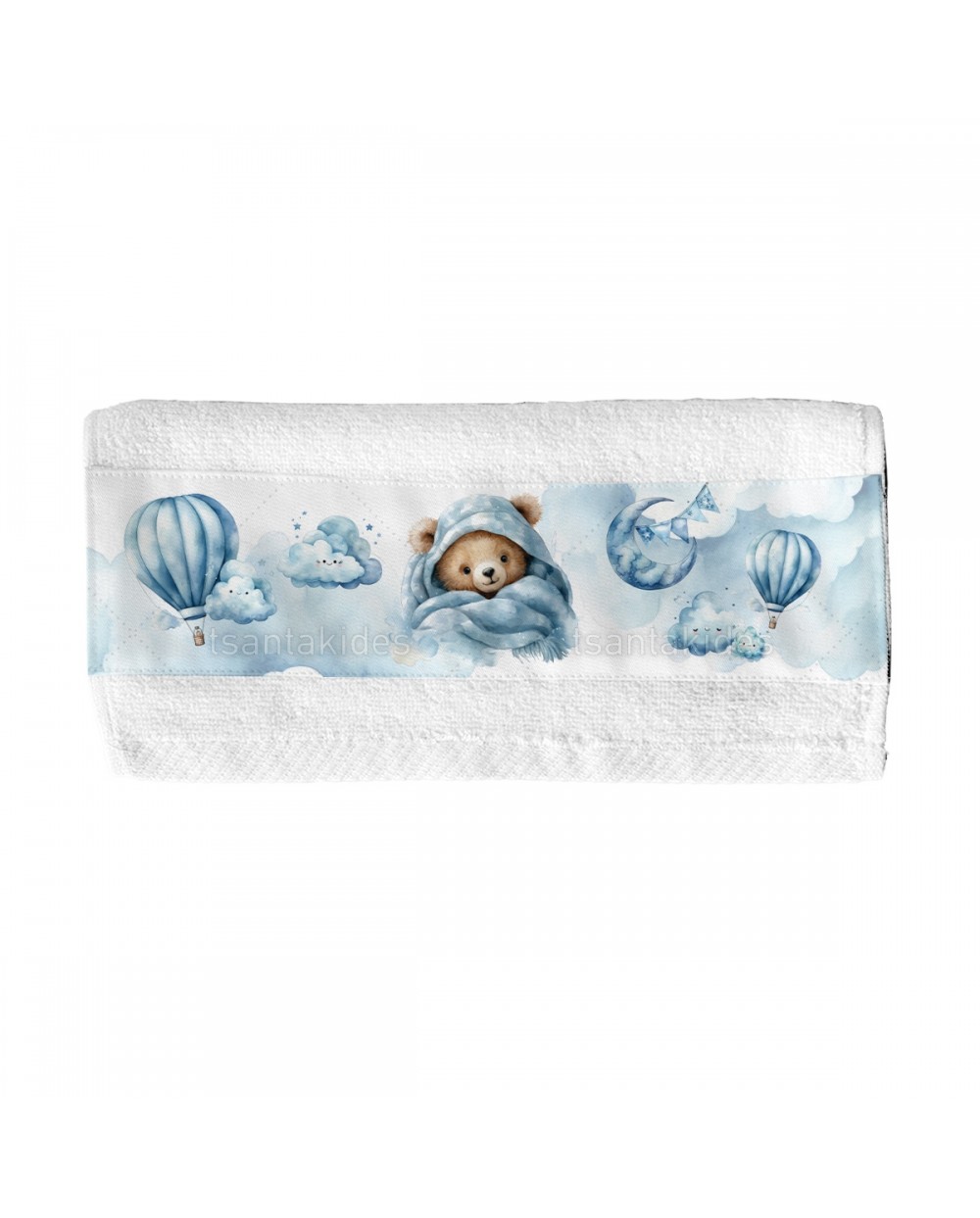TS745 Μπομπονιέρα Βάπτισης Πετσέτα Αρκουδάκι Αερόστατο