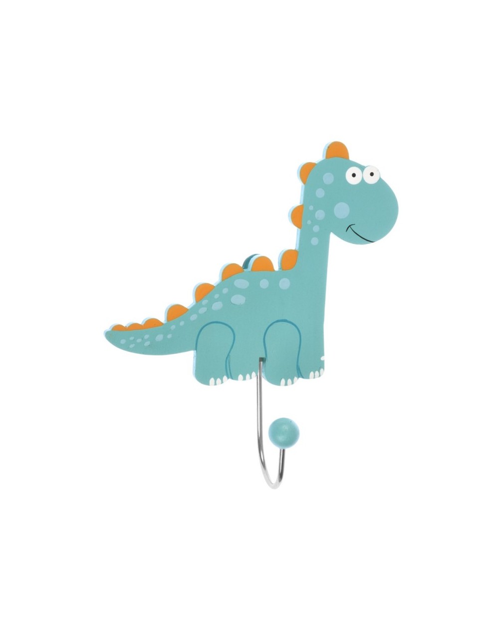 Ξύλινη κρεμάστρα τοίχου δεινόσαυρος σε βεραμάν χρώμα με πορτοκαλί λεπτομέρειες.