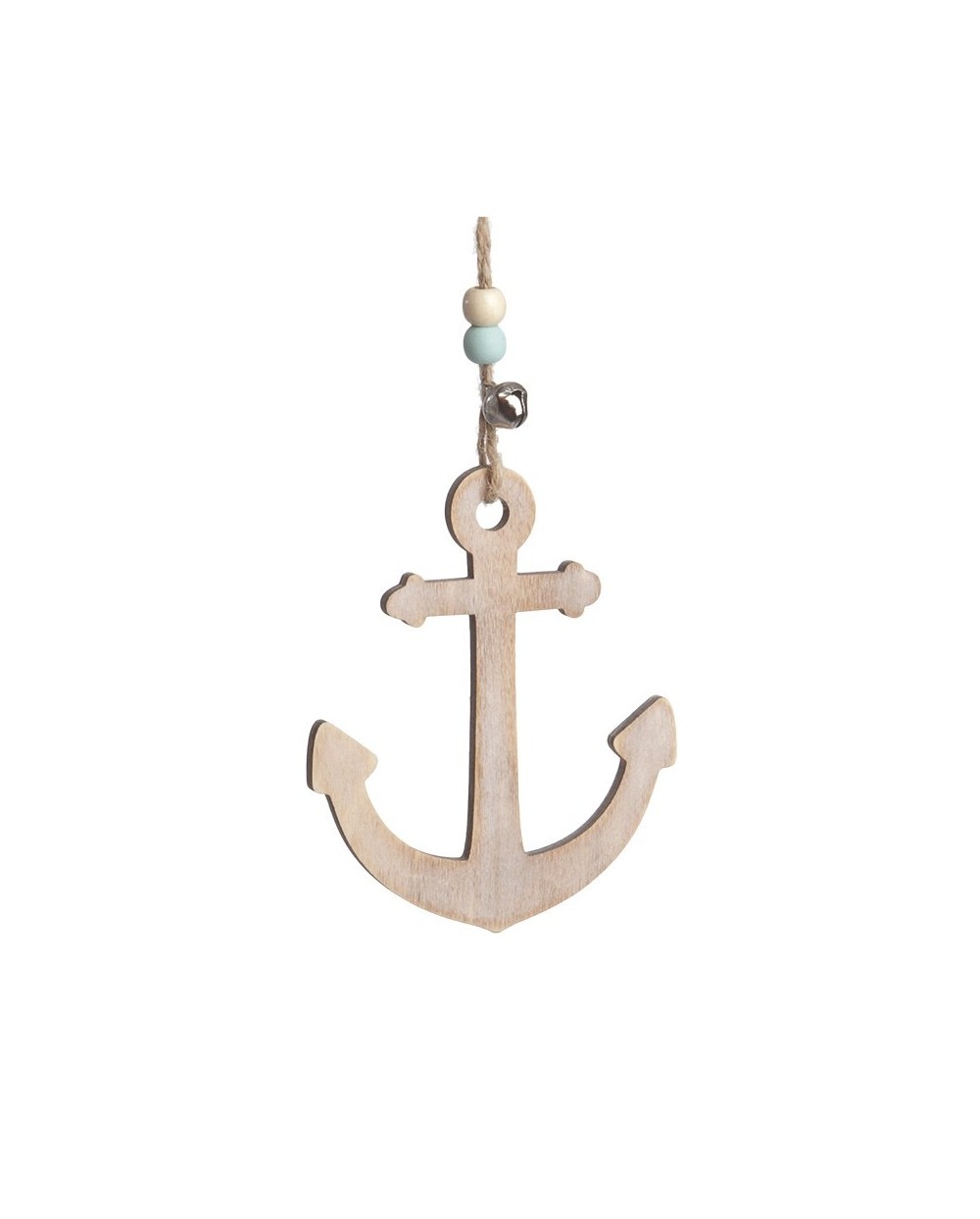 Κρεμαστή Μπομπονιέρα Βάπτισης Ξύλινη Άγκυρα Φυσικό