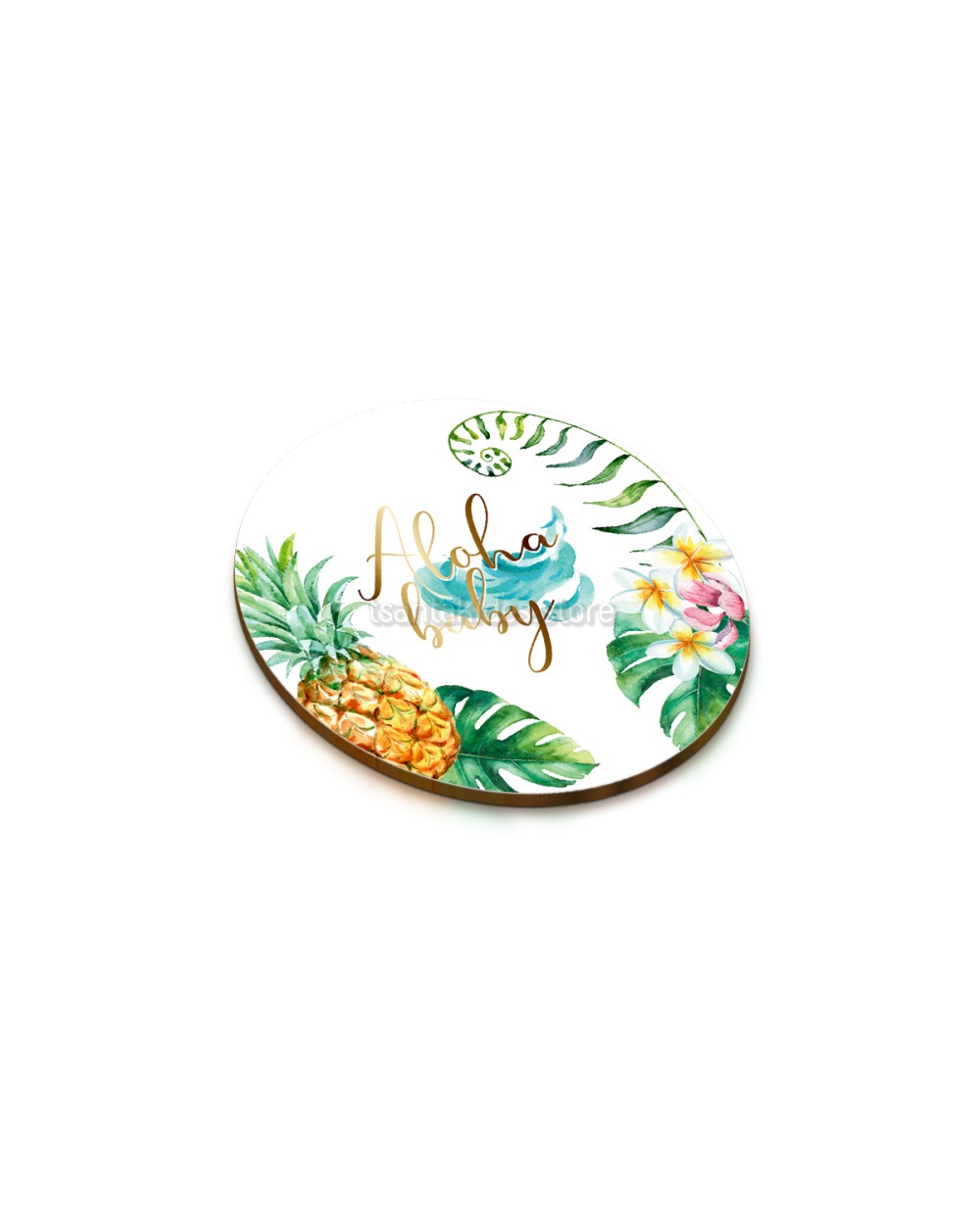 TS190 Μπομπονιέρα Βάπτισης Ξύλινο Σουβέρ Aloha baby