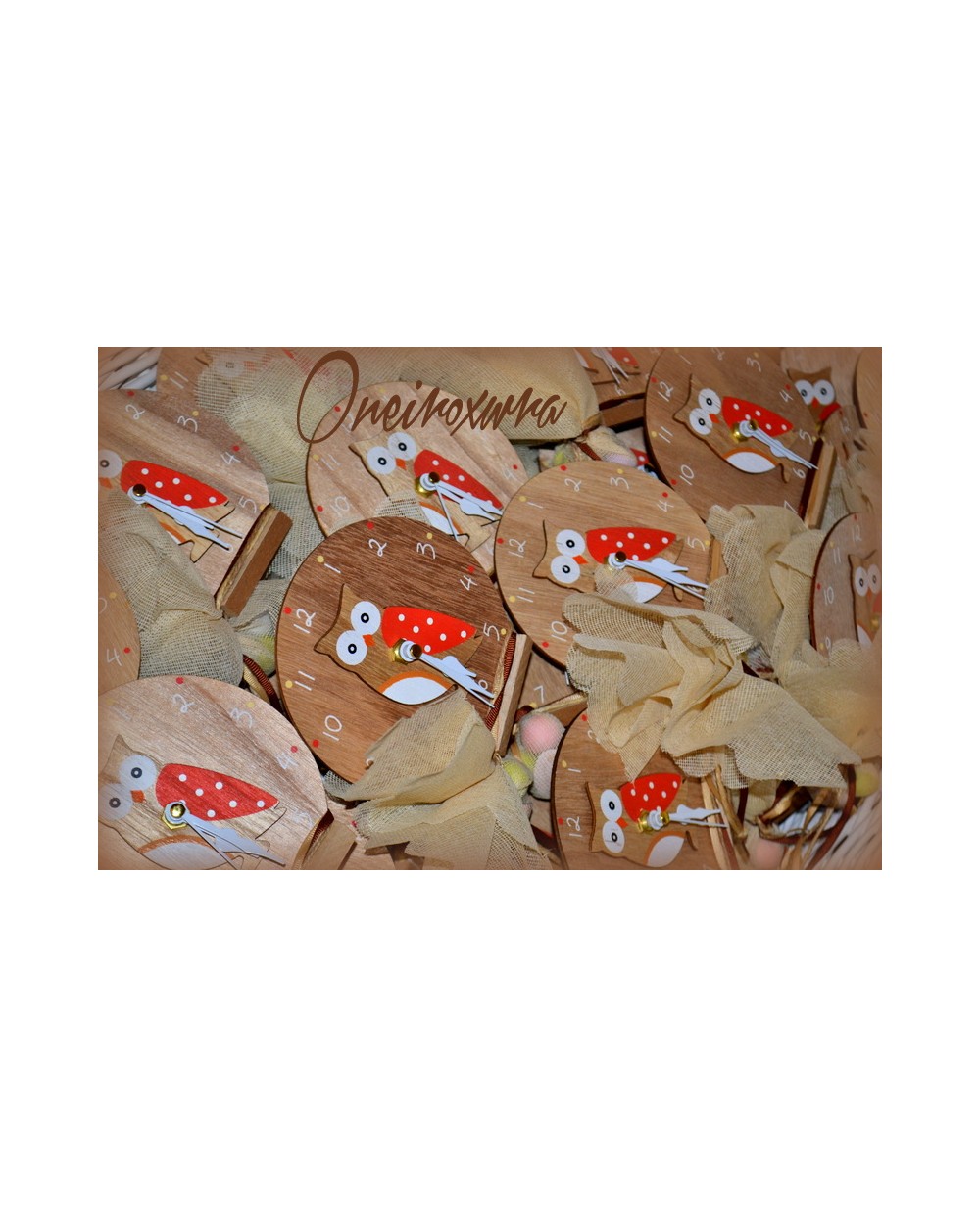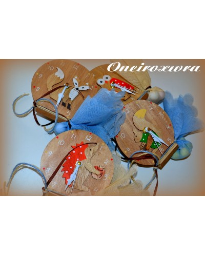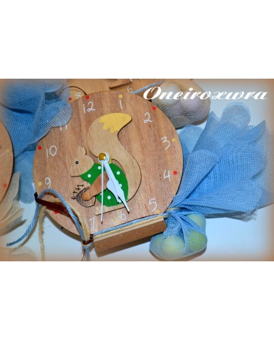 Μπομπονιέρα Βάπτισης Ξύλινο Ρολόι Κουκουβάγια