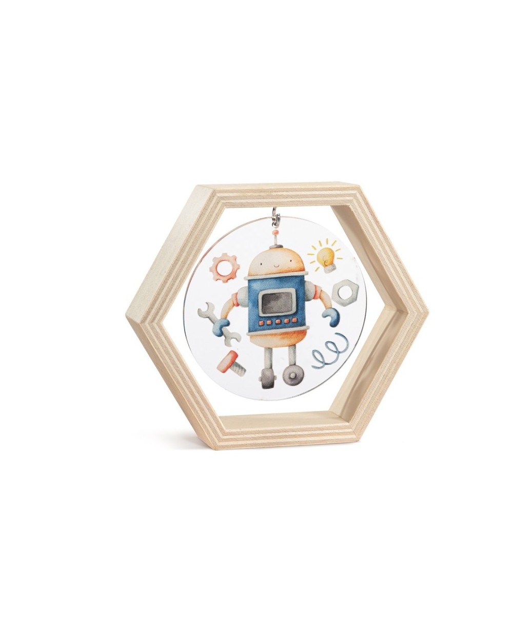 Μπομπονιέρα Ξύλινο Εξάγωνο Καδράκι με Plexi Ρομπότ 02455001