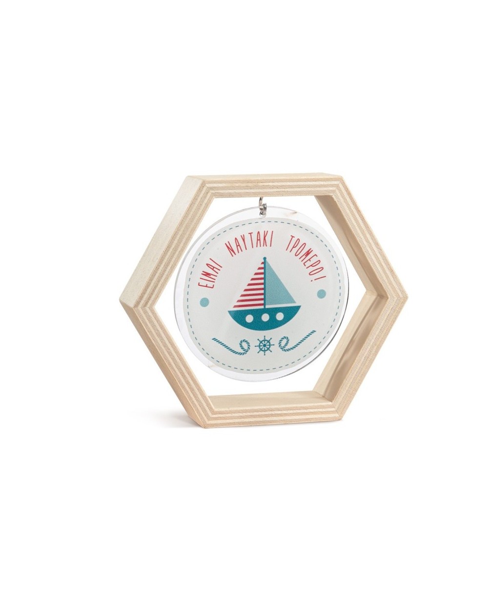 Μπομπονιέρα Ξύλινο Εξάγωνο Καδράκι με Plexi Καραβάκι 02456501