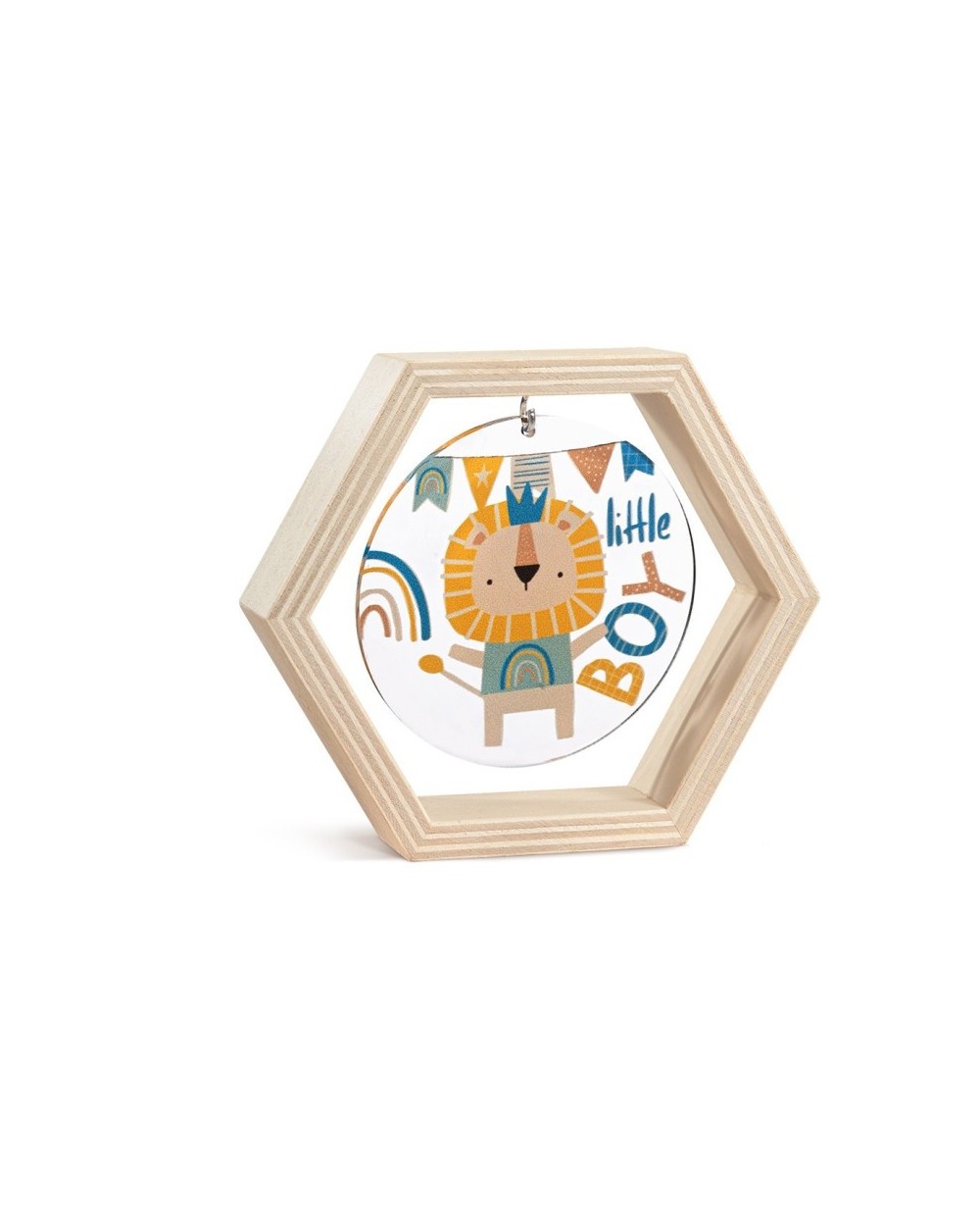Μπομπονιέρα Ξύλινο Εξάγωνο Καδράκι με Plexi Λιοντάρι 02453501