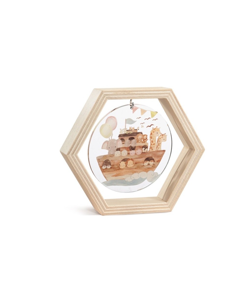 Μπομπονιέρα Ξύλινο Εξάγωνο Καδράκι με Plexi Κιβωτός 02454501