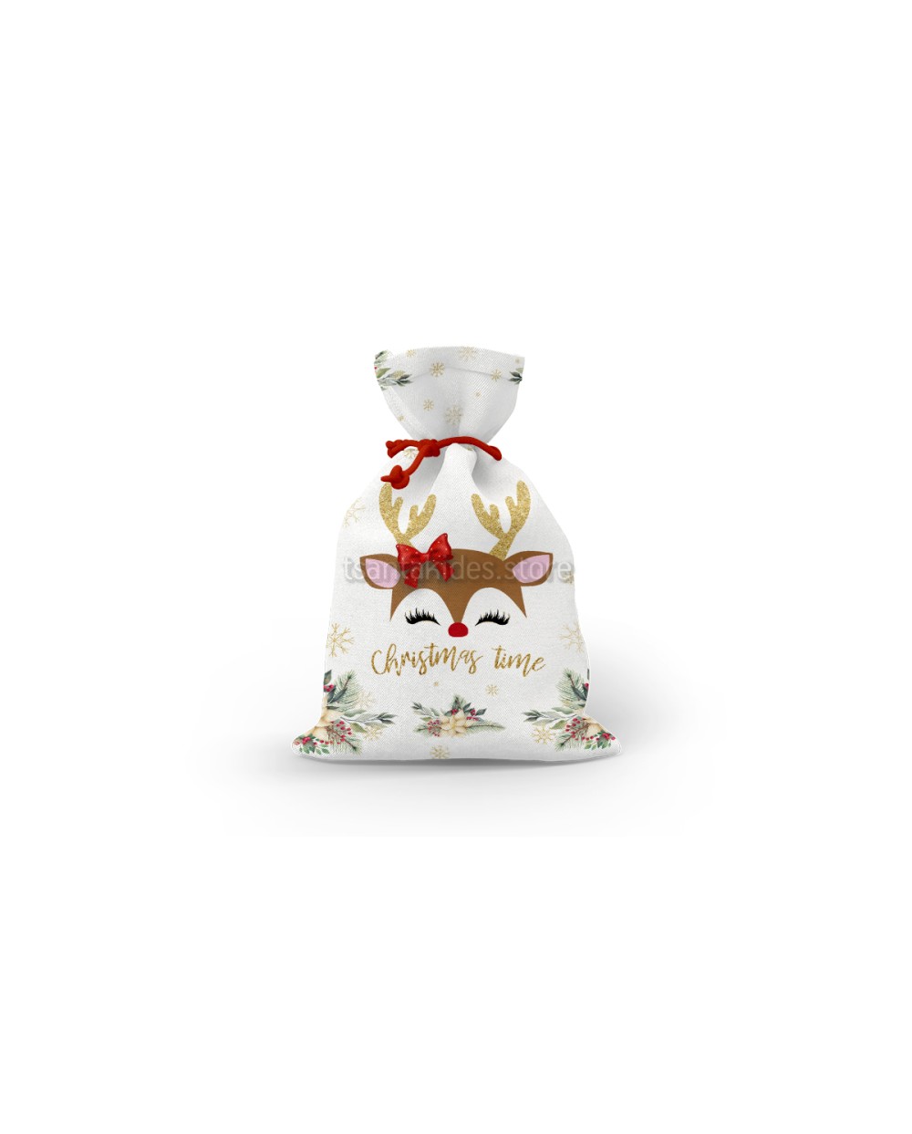 Μπομπονιέρα Βάπτισης Υφασμάτινο Πουγκί TS233 XMAS Ελαφάκι