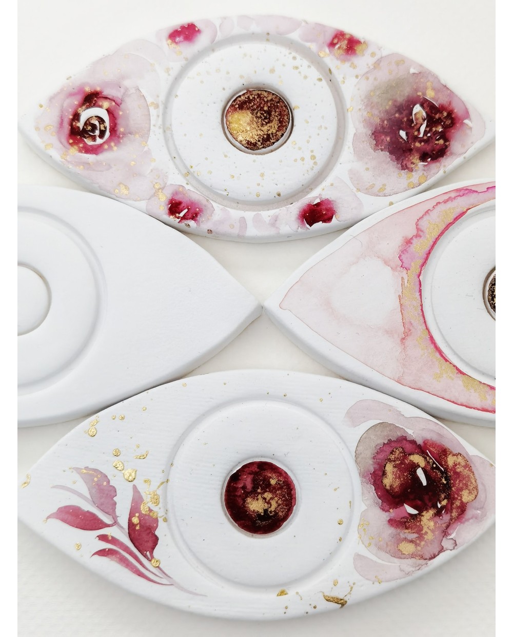 Μπομπονιέρα Βάπτισης Γύψινo Μάτι Λουλούδια Ζωγραφισμένο
