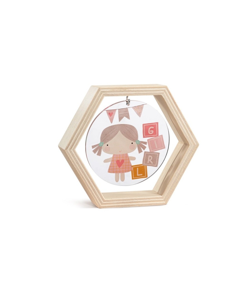 Μπομπονιέρα Ξύλινο Εξάγωνο Καδράκι με Plexi Κοριτσάκι 02449501