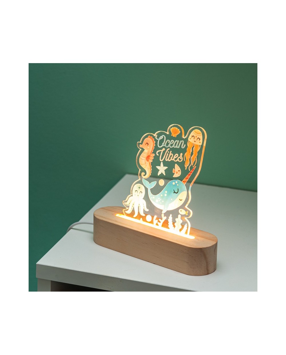 Μπομπονιέρα Ξύλινη βάση Led με Plexiglass Βυθός 02353101
