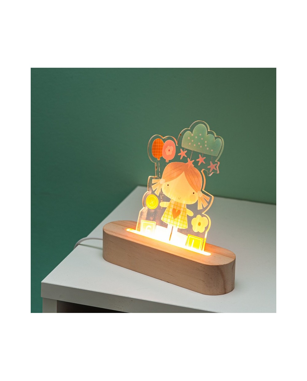 Μπομπονιέρα Ξύλινη βάση Led με Plexiglass Κοριτσάκι 02349501