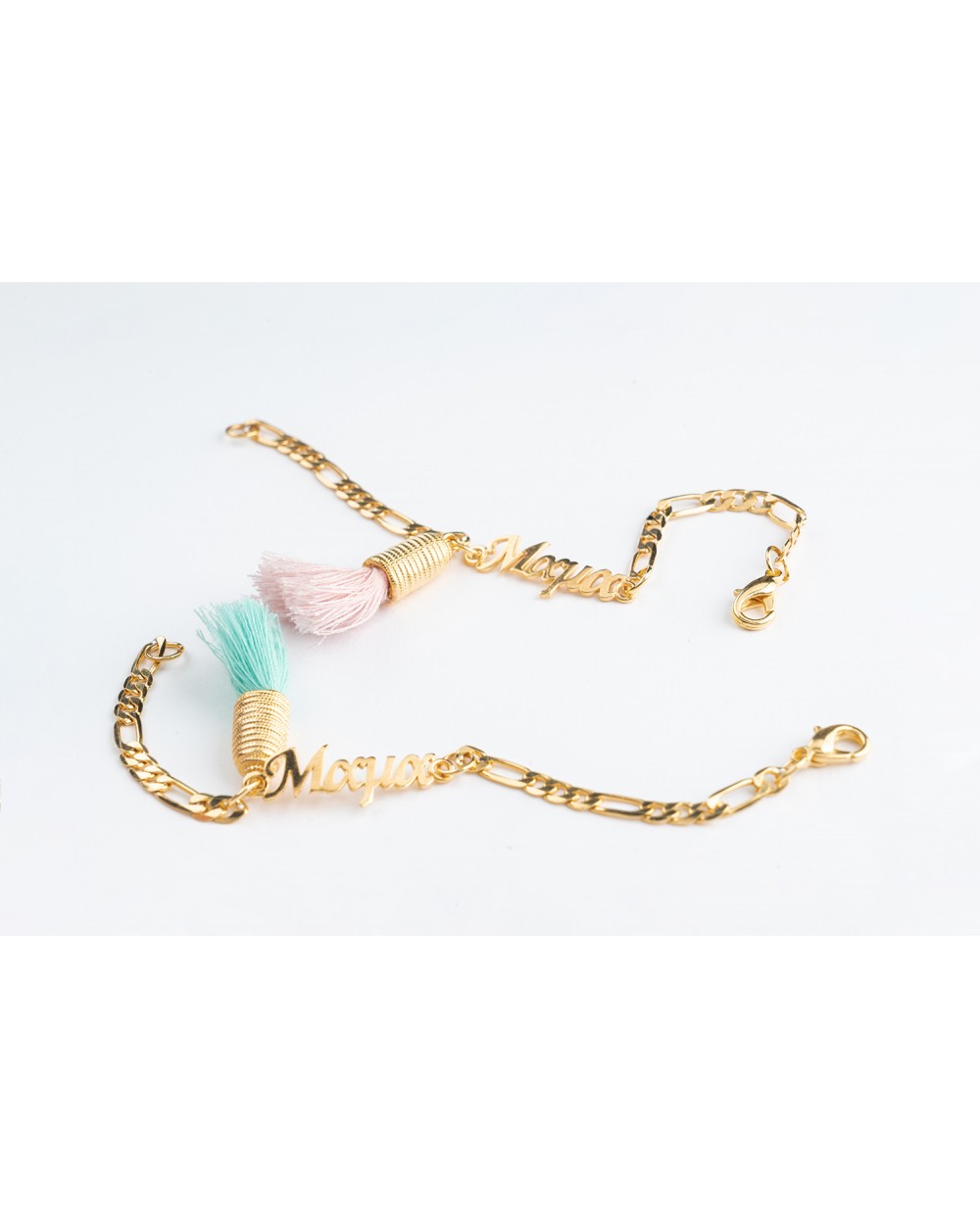 Bracelet βραχιόλι για τη μαμά σε επιχρυσωμένη βέργα με 24Κ και φουντά από φούντες βεραμάν και ροζ διατίθεται και σε νονά, γιαγιά.