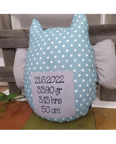 Υφασμάτινη Μεγάλη Κουκουβάγια Αχιλλέας με στοιχεία γέννησης