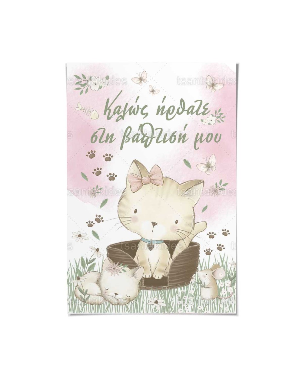 TS762 Καρτολίνο Βάπτισης - Party με θέμα Γατούλα