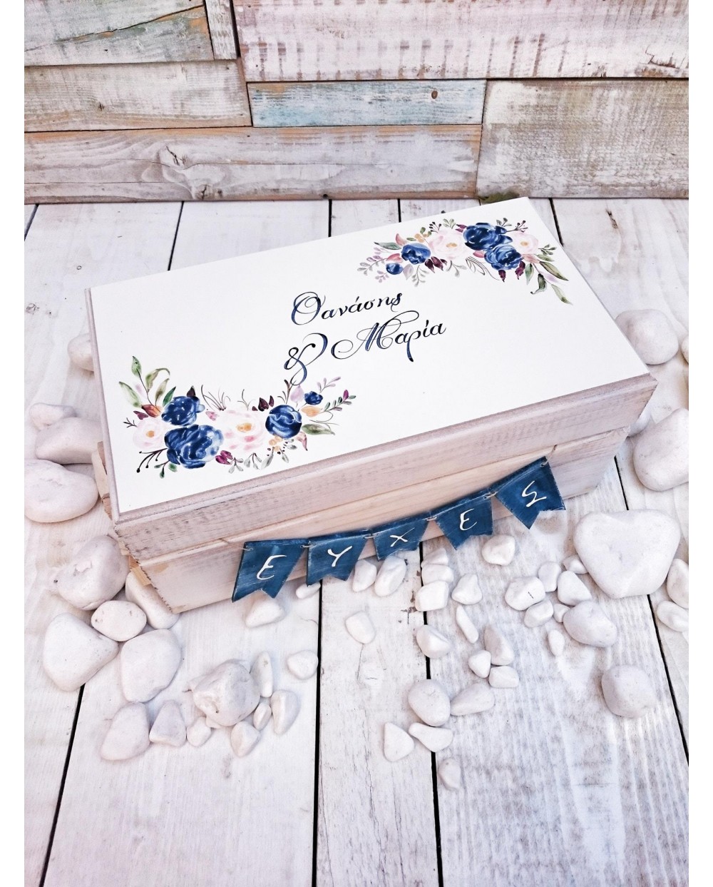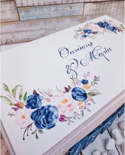 Ξύλινο Κουτί Ευχών Γάμου Floral Θανάσης & Μαρία
