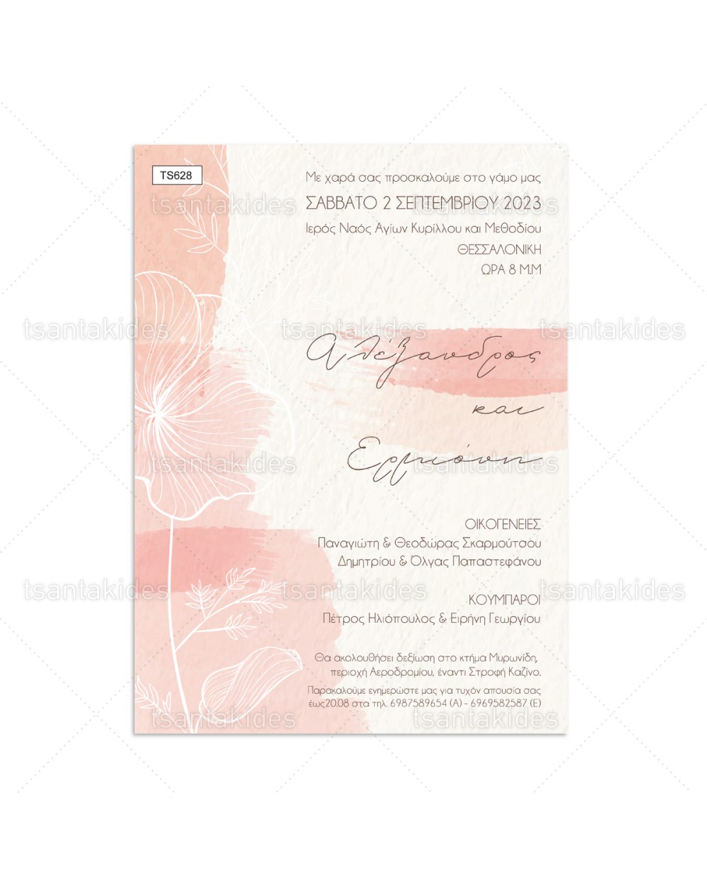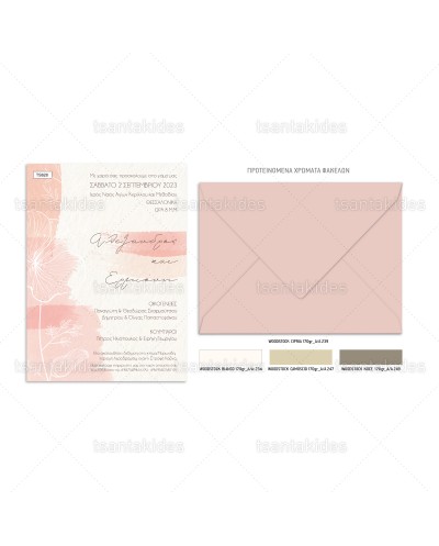 Προσκλητήριο γάμου σε minimal ύφος με pastel χρωματισμούς.