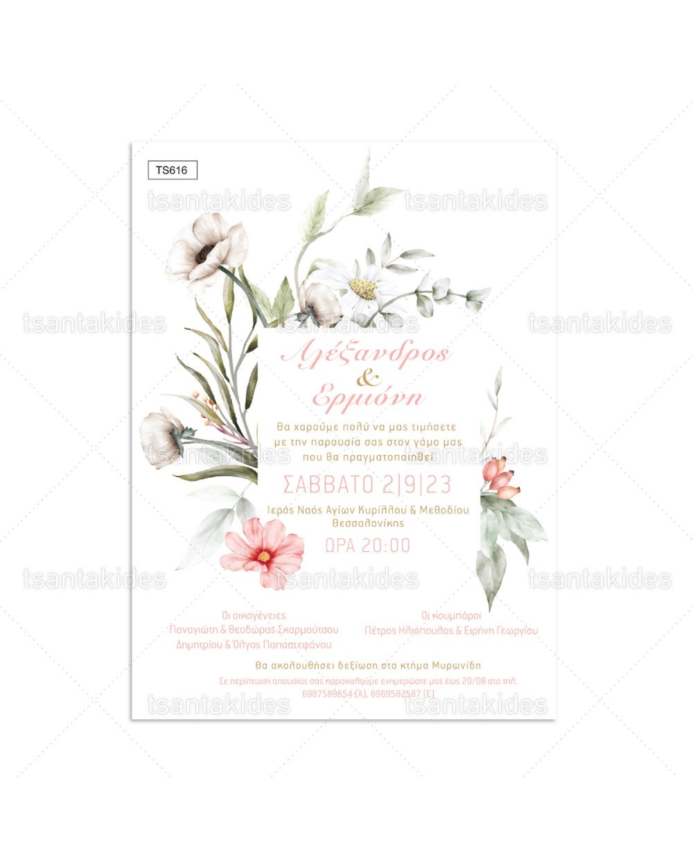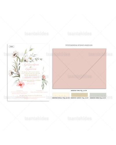 (TS616) Προσκλητήριο Γάμου με σύνθεση από wildflowers