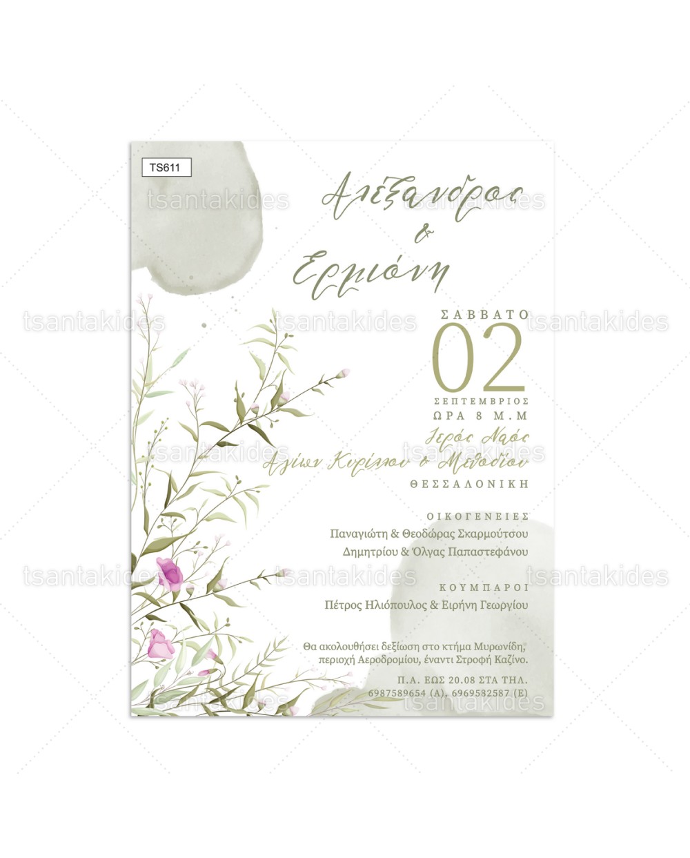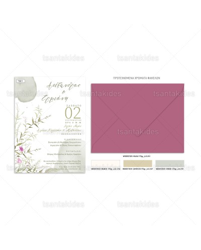Προσκλητήριο γάμου με floral σχεδιασμό.