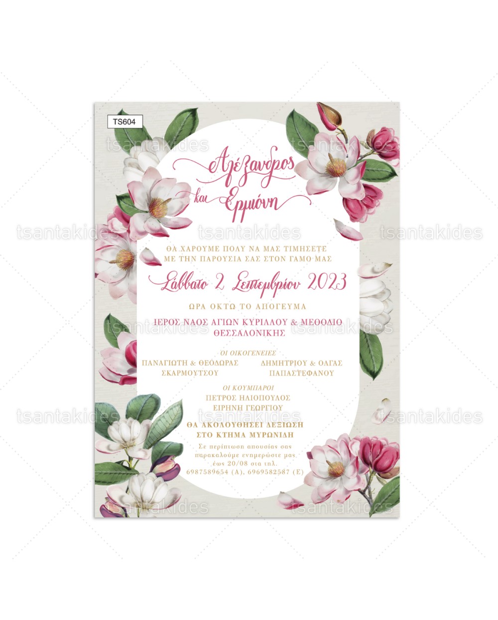 (TS604) Προσκλητήριο Γάμου με φούξια μανόλιες