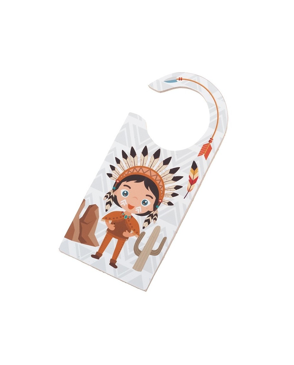Ξύλινο κρεμαστό διακοσμητικό πόρτας με αυτοκόλλητο ινδιάνος.