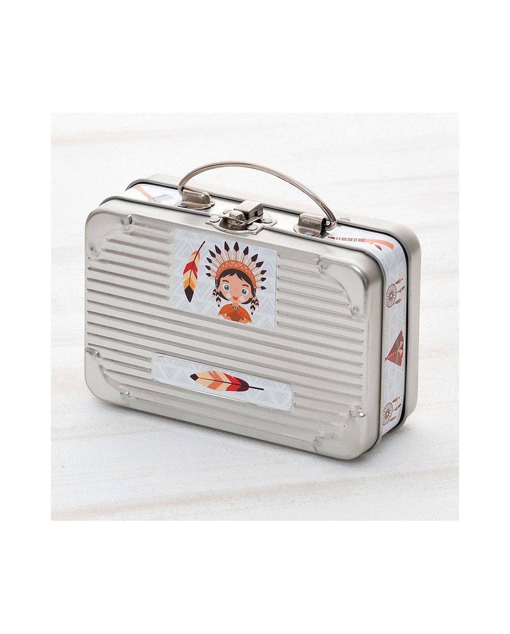 Μεταλλικό βαλιτσάκι σε ασημί χρώμα με αυτοκόλλητο ινδιάνος.