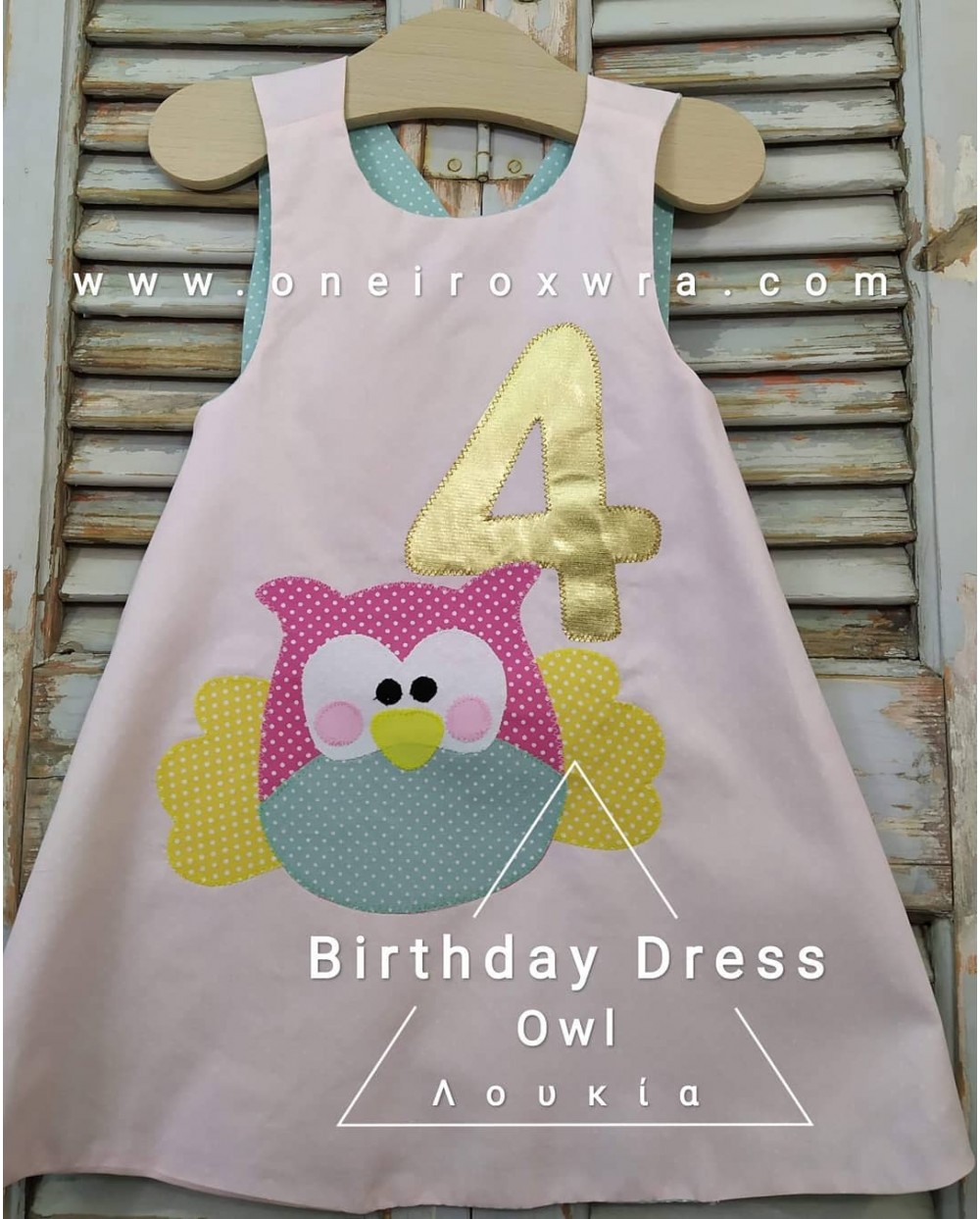 Φορεματάκι Γενεθλίων με Ηλικία και θέμα την Κουκουβάγια