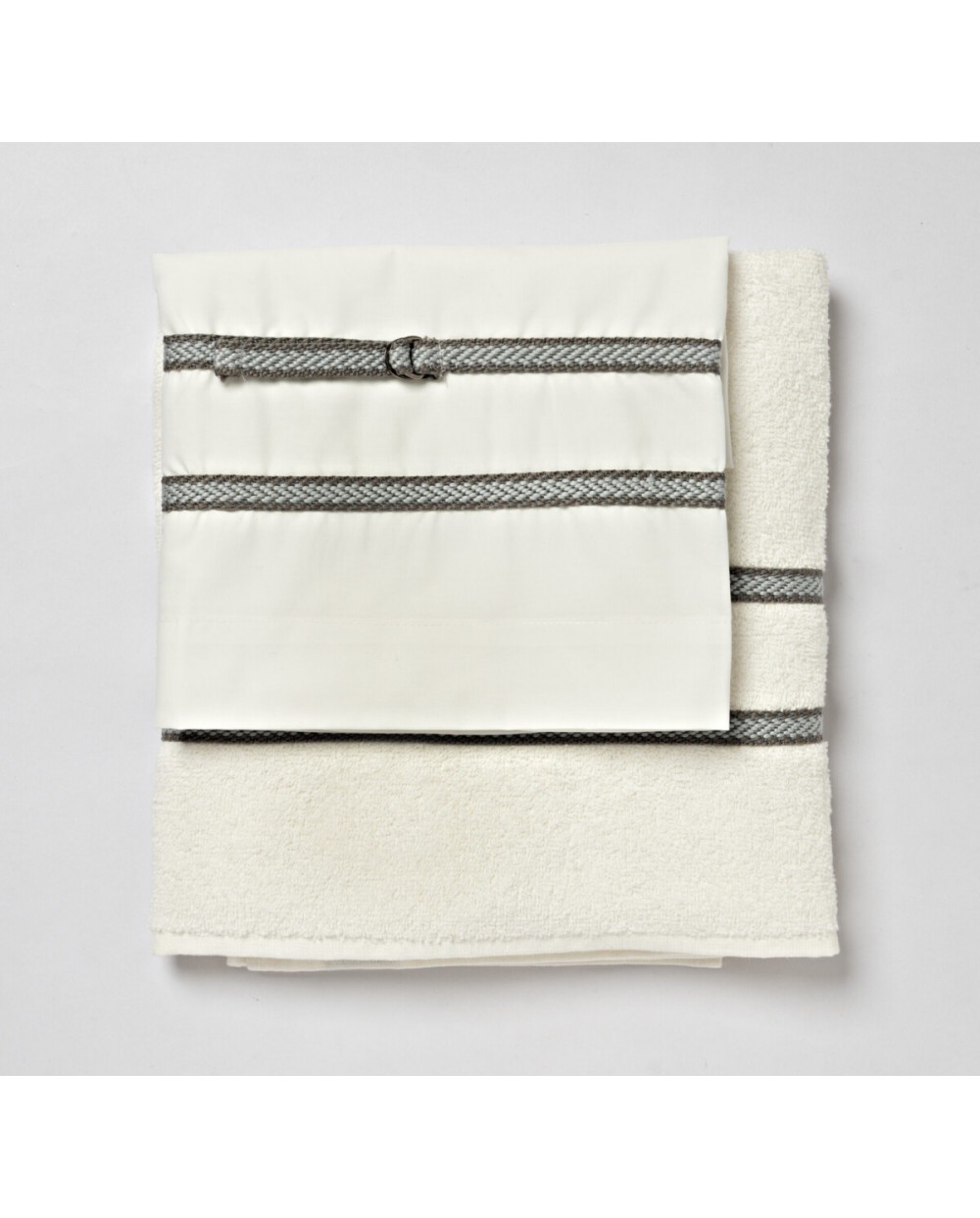 Βαμβακερά  λαδόπανα σε ιβουάρ χρώμα με διπλό ιμάντα γκρι στο τελείωμα του και ιδιαίτερο δέσιμο.