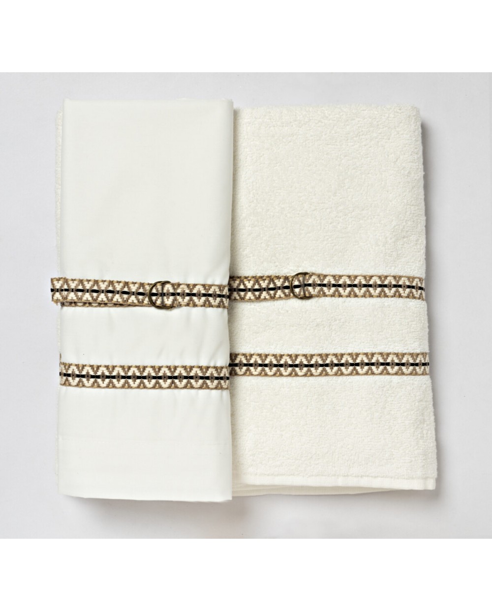 Βαμβακερά  λαδόπανα σε ιβουάρ χρώμα με διπλό μπεζ καφέ ιμάντα και ιδιαίτερο δέσιμο.