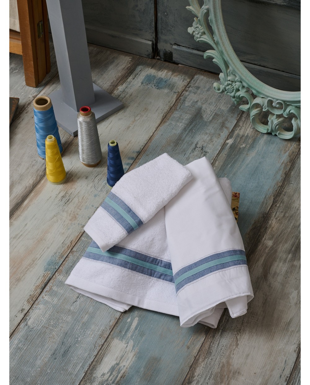 Λαδόπανα Βάπτισης για Αγόρι FK2016 Λευκό - Τζιν - Βεραμάν