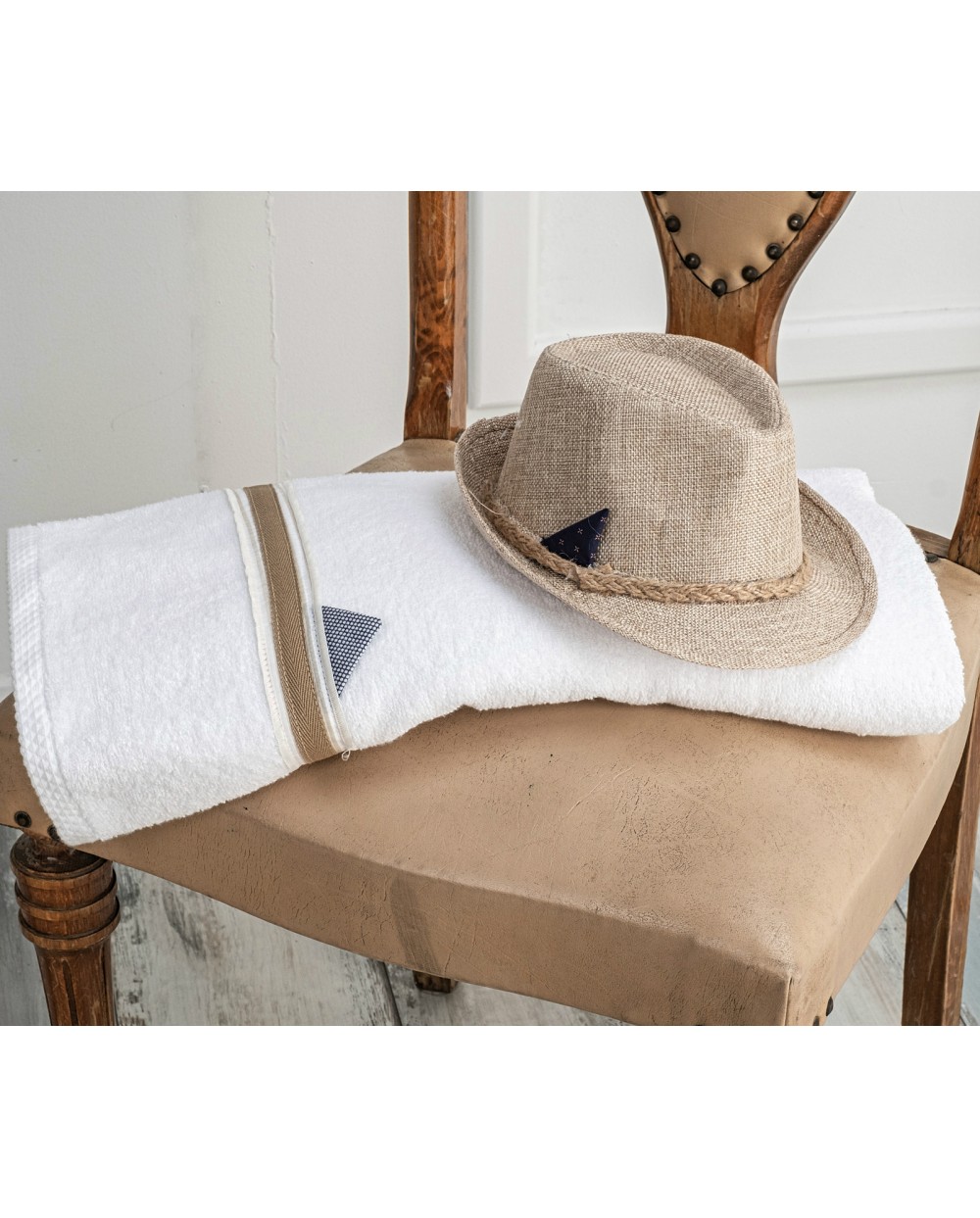 Βαμβακερό σετ λαδόπανων σε λευκό χρώμα με ιδιαίτερη τρέσα από ζικ-ζακ...