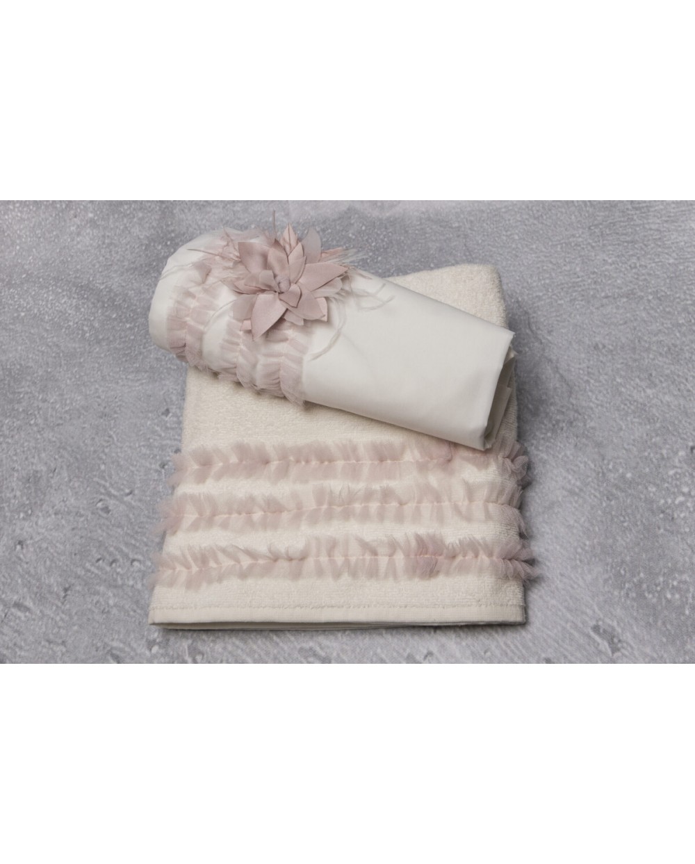 Μοναδικά κομψό βαμβακερό σετ λαδόπανων σε εκρού χρώμα, με διακοσμητική φάσα υφάσματος...