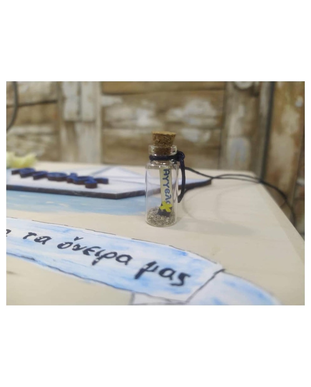 Μαρτυρικά Βάπτισης Κολιέ Γυάλινο Μπουκαλάκι με Άμμο & Σταυρό