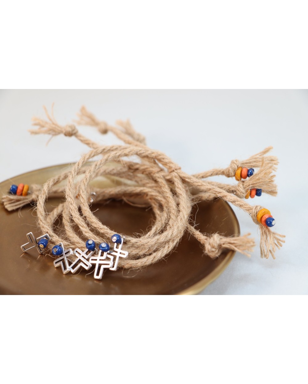Μαρτυρικό βραχιόλι με βελούδινο κορδόνι σε μπεζ απόχρωση, γαλάζια miyuki και σταυρό. Οι φωτογραφίες...
