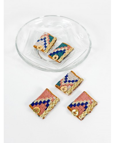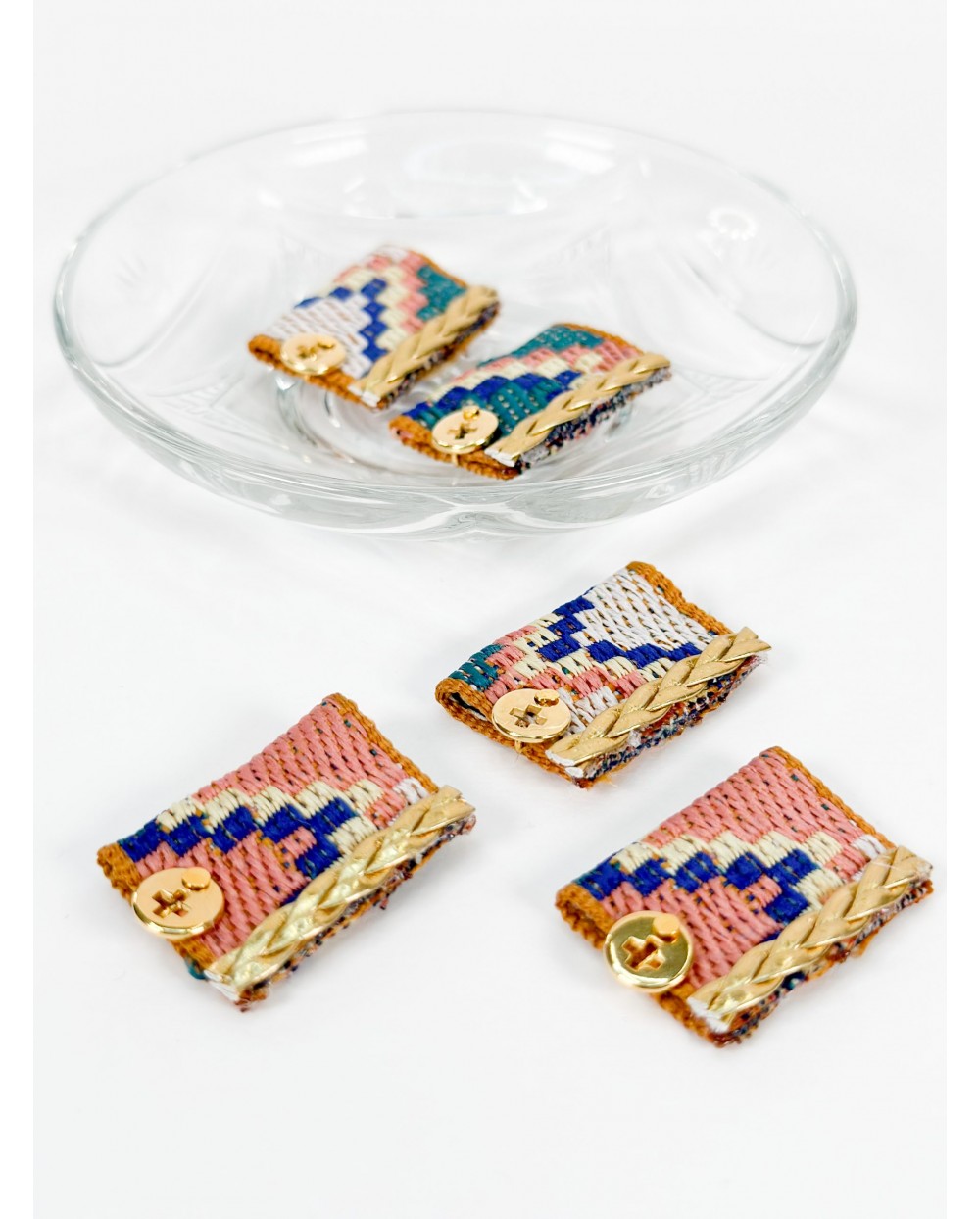 Μαρτυρικά μπρελόκ με μπεζ κορδόνι, φλουρί και επιχρυσωμένο σταυρό κολλητό.