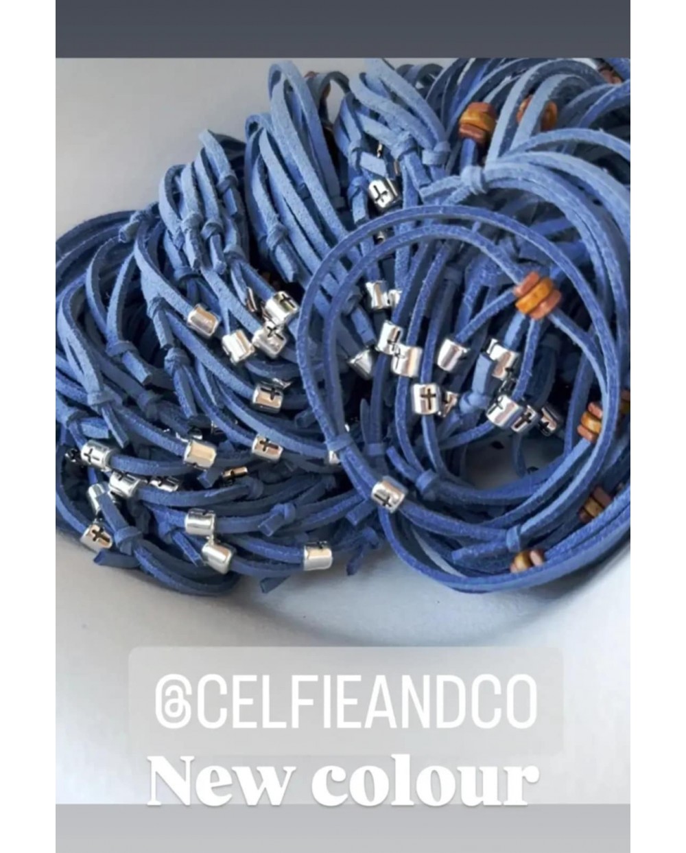 Μαρτυρικό βραχιόλι με μπλε κορδόνι, σταυρό σε ασημί απόχρωση και καφέ χάντρες. Οι φωτογραφίες έχουν υποστεί επεξεργασία, ίσως να διαφέρουν λίγο τα χρώματα στην πραγματικότητα.