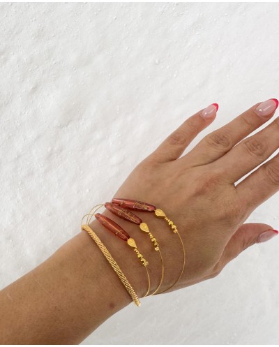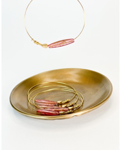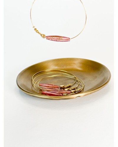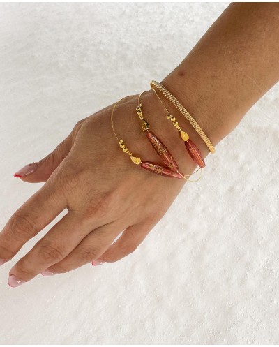Μαρτυρικό βραχιόλι με σταυρό και μακρόστενη ροζ χάντρα με χρυσές λεπτομέρειες. Οι φωτογραφίες έχουν υποστεί επεξεργασία, ίσως να διαφέρουν λίγο τα χρώματα στην πραγματικότητα.
