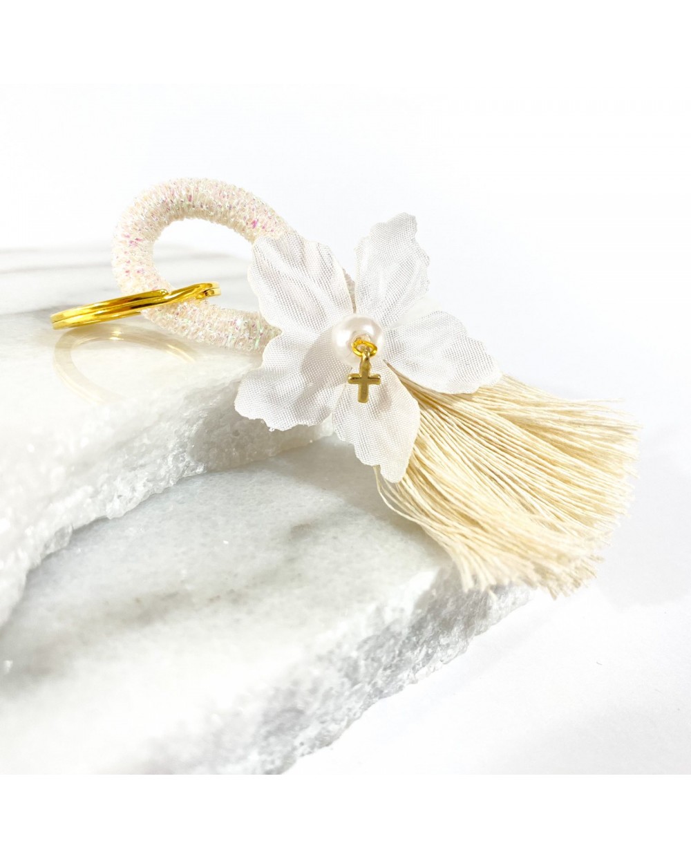 24014 Μαρτυρικό μπρελόκ με σατέν λουλούδι και επίχρυσο σταυρό