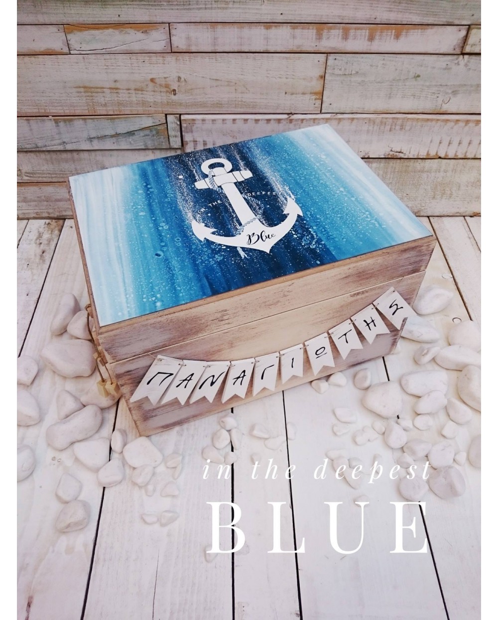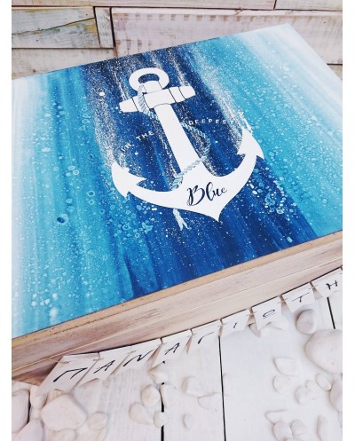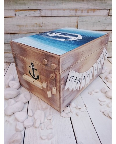 Ξύλινο Κουτί Βάπτισης Ζωγραφισμένο Άγκυρα