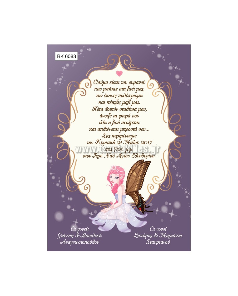 (ΒΚ-6083) Προσκλητήριο Βάπτισης Νεράιδα