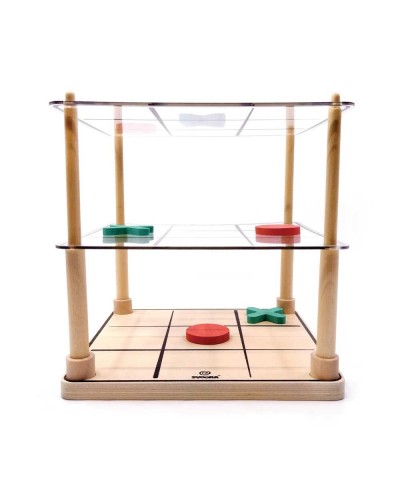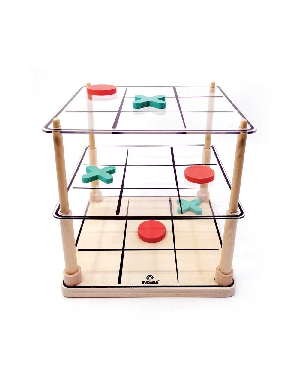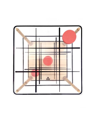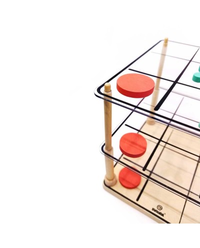 Μια πιο «ζωντανή» εκδοχή του κλασικού παιχνιδιού της τρίλιζας έρχεται από την εταιρεία Svoora σε 3D παραλλαγή. Στόχος του παιχνιδιού είναι να τοποθετηθούν 3 ίδια σύμβολα «Χ» ή «Ο» στη σειρά. Πόσες τρίλιζες θα καταφέρετε να δημιουργήσετε; Ο παίκτης που θα κάνει τις περισσότερες είναι και ο νικητής. Οι τρίλιζες μπορούν να είναι οριζόντιες, κατακόρυφες ή διαγώνιες, σε ένα ή τρία επίπεδα. Περιλαμβάνει: 1 ξύλινη βάση, 13 κόκκινα πιόνια «Ο», 13 μπλε πιόνια «Χ», 2 ακρυλικές βάσεις, 4 ξύλινες ράβδους, φυλλάδιο οδηγιών. Ένας διασκεδαστικός τρόπος για την ανάπτυξη της συγκέντρωσης, της στρατηγικής, της χωροταξικής δεξιότητας και της επίλυσης προβλημάτων! Υλικά Κατασκευής: κόντρα πλακέ, ξύλο οξιάς, τεϊόδεντρο. Κατάλληλο από 3 ετών και άνω. Αριθμός Παικτών: 2 Διαστάσεις: 18 x 18 x 18 εκ.