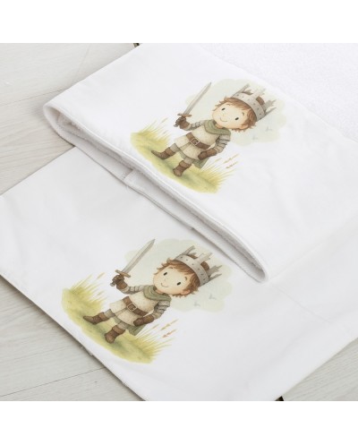 Λαδόπανα: Πλήρες σετ (πετσέτες, εσώρουχα) από 100% βαμβάκι, με τυπωμένη την παράσταση του ιππότη.