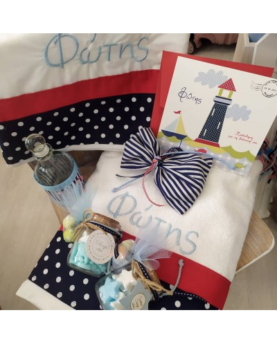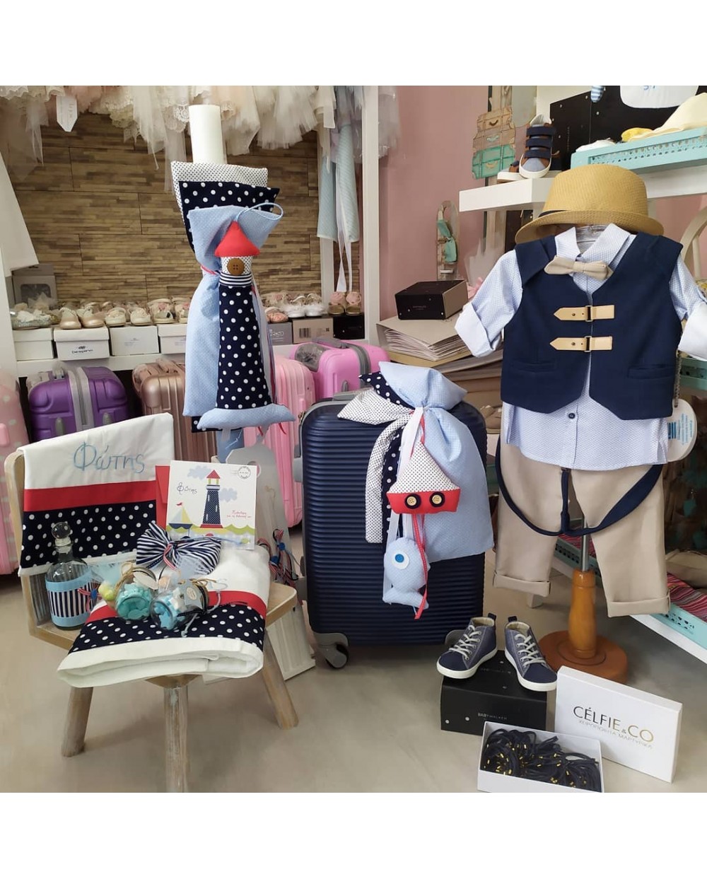 Πακέτο Βάπτισης Αγόρι Υφασμάτινος Φάρος Βαλίτσα Καραβάκι