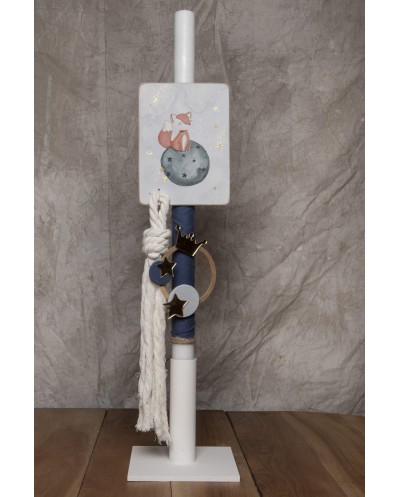 Iδιαίτερη χειροποίητη λαμπάδα με ξύλινα στοιχεία και ζωγραφική με το ίδιο θέμα