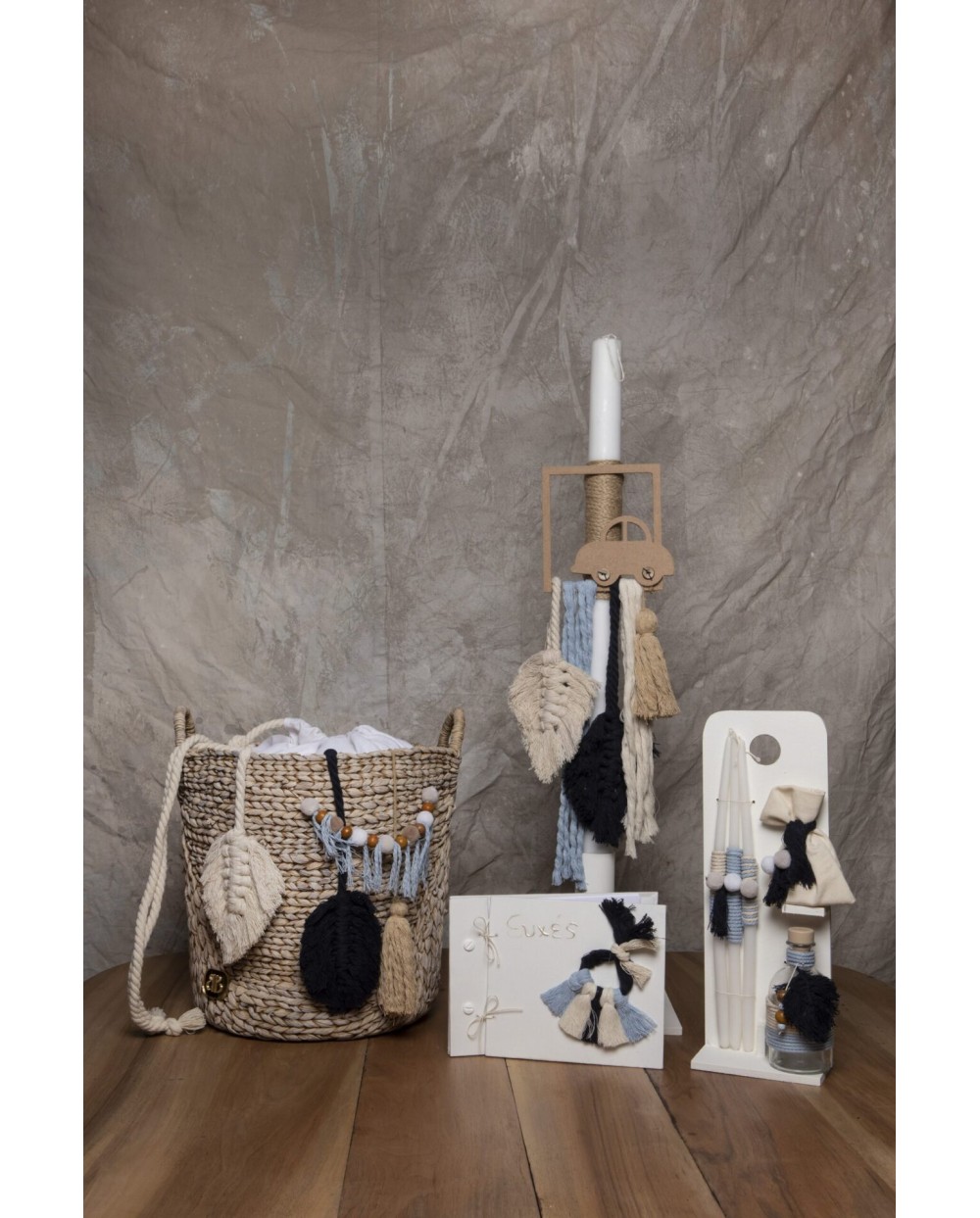 Ιδιαίτερη χειροποίητη λαμπάδα με μακραμέ και θέμα της επιλογής σας