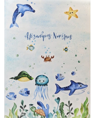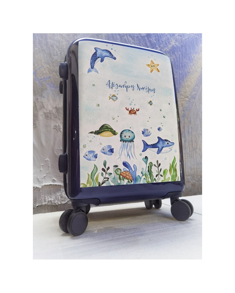 Τροχήλατη Βαλίτσα Βυθός με Όνομα ζωγραφισμένη στο χέρι