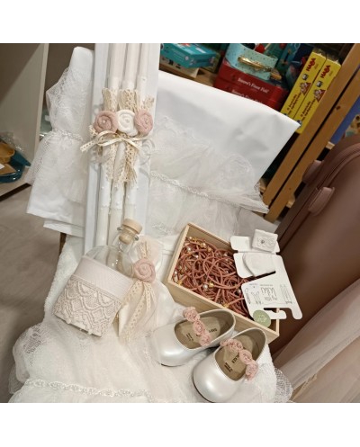 Στην τιμή δεν περιλαμβάνεται το φόρεμα, το ζακετάκι, τα μαρτυρικά, τα παπούτσια και τα καλτσάκια