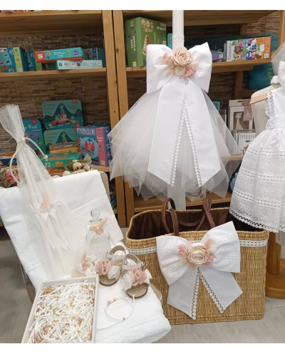 2512209 La Joie Πακέτο Βάπτισης Ψάθινη Τσάντα με Λουλούδια