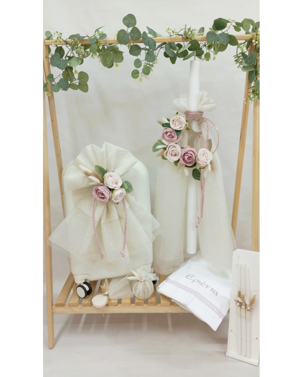 Πακέτο βάπτισης Τροχήλατη Βαλίτσα Βενέτη K044 Στεφάνι γκλίττερ